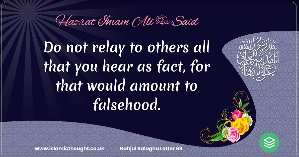 Do not relay to others all that you hear as fact, for that would amount to falsehood. Letter 69