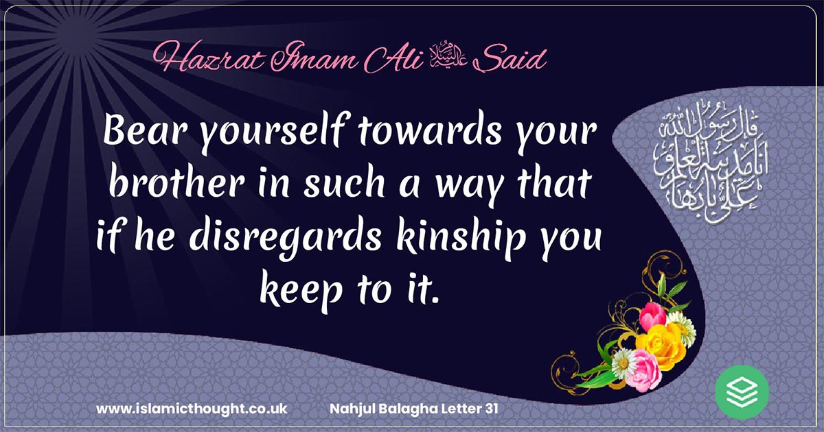 Bear yourself towards your brother in such a way that if he disregards kinship you keep to it.