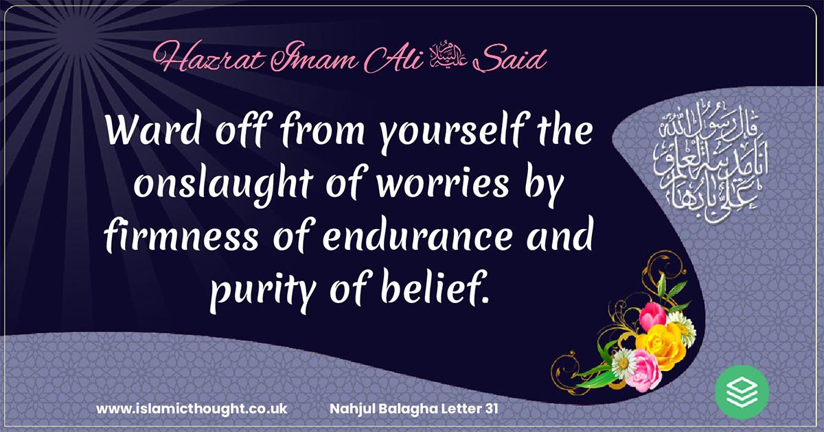 Ward off from yourself the onslaught of worries by firmness of endurance and purity of belief.